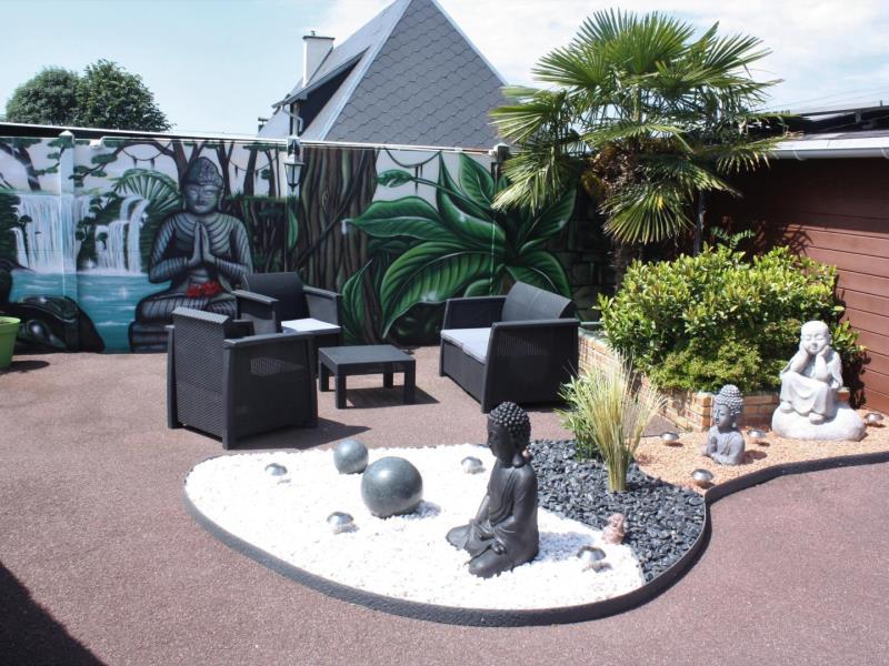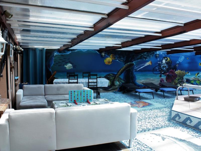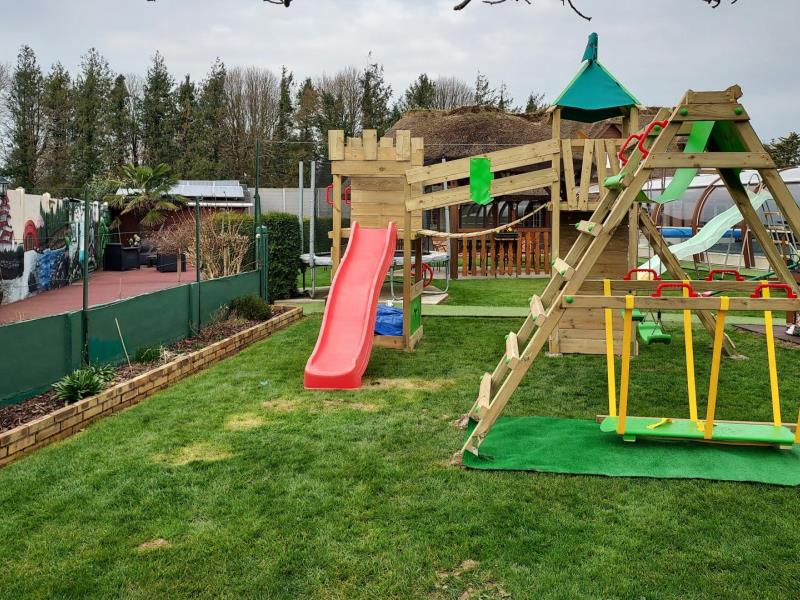 Rez-de-chaussée : – cuisine ouverte (plaques électriques et feux gaz, four, micro-ondes, réfrigérateur avec partie congélateur, lave-vaisselle), – espace repas, – salon avec baby-foot, flipper (avec monnayeur) et billard, TV, lecteur DVD, – salle d’eau (douche italienne, 2 lavabos) avec lave-linge, – wc séparé. 1er étage : – chambre (1 lit 1 personne 90x190cm et lit 2 personnes 140x190cm) en enfilade 1 chambre (1 lit 2 personnes 160x200cm). Equipement bébé sur demande (petite baignoire, lit bébé, réhausseur). Extérieur : table de ping-pong, trampoline, toboggan. balançoire, salon de jardin et lit bain de soleil. Barbecue.