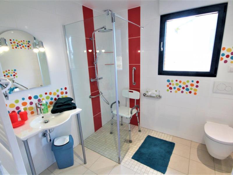 – Séjour salon grand confort avec trois canapés, TV écran plat et table basse, – Grande table repas, – Cuisine américaine entièrement équipée (hotte, congélateur, lave-vaisselle, plaques induction, cafetière à filtre, four encastré, grille pain…), – Chambre 2 personnes « LYS » (2 lits 90cmx200cm), – Salle d’eau moderne avec douche italienne adaptée PMR et WC suspendus, Premier étage : – Palier d’accès aux chambres avec canapé convertible de bonne qualité, – Chambre 2 personnes « IRIS » (2 lits 90cmx200cm), – Chambre 2 personnes « MYOSOTIS » (2 lits 90cmx200cm), – Salle d’eau avec douche moderne, – Chambre 2 personnes « LIN » (2 lits 90cmx200cm), – Salle de bain avec baignoire « Pattes de Lion », – WC indépendants, Chauffage au sol (aérothermie), double espace terrasse avec salons de jardins et barbecue. Terrain de Pétanque sur place. Jeux d’enfants dans le jardin. Transats. Jeux de sociétés. Chauffage inclus et lits faits.