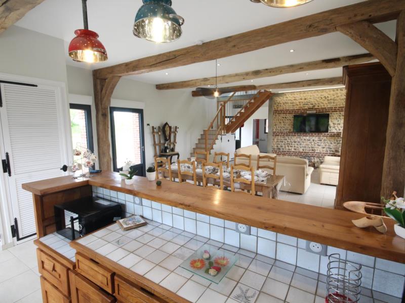 Au cœur d’une exploitation de Lin, les propriétaires ont rénové cette ancienne étable en associant avec brio modernité et cachet de l’ancien. Ils ont pris plaisir à détourner un grand nombre d’objets anciens pour leur redonner une nouvelle vie et un caractère insolite. Tout a été pensé pour votre confort et garantir un séjour réussi , que ce soit en famille, entre amis ou pour un déplacement professionnel. Vous pourrez profiter des transats, des jeux d’enfants, du terrain de pétanque et du barbecue du jardin clos arboré. Vous pourrez facilement rayonner sur Étretat et ses alentours à seulement 10km ou vous rendre à Honfleur à 35 minutes. Rez-de-chaussée : – Entrée donnant sur vaste pièce de vie lumineuse avec vue traversante :