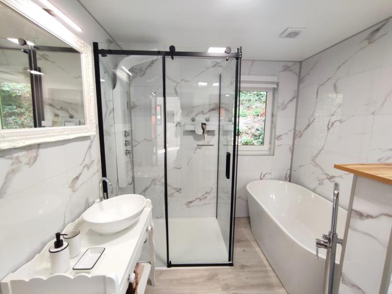 Plain-pied : – Cuisine toute équipée (lave-vaisselle, combiné four/micro-ondes, plaques induction, cafetière à dosettes Tassimo, cafetière à filtre, réfrigérateur avec freezer…) ouverte sur séjour/salon avec canapé et TV avec Netflix Inclus, – Chambre 2 personnes avec lit 160x200cm, – Salle d’eau effet marbre avec douche à l’italienne et baignoire ilot grandes dimension. Espace détente attenant au gîte avec bibliothèque, jeux de sociétés et buanderie avec lave-linge. Terrasse privative avec salon de jardin et barbecue. Transats. Jardin commun non clos 5000m². Accès forêt et randonnées depuis gîte. Conexion internet Wifi. 2 vélos à disposition sur demande. Parking privatif devant gîte.